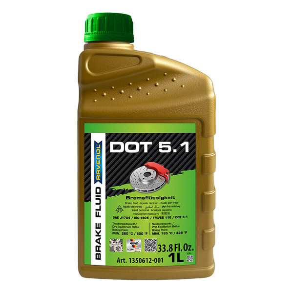RAVENOL DOT 5.1-ի հատուկ բանաձևը համապատասխանում է DOT 5.1 SAE J 1704, ISO 4925 միջազգային չափանիշներին և FMVSS 116 DOT 5.1 ստանդարտի պահանջներին: