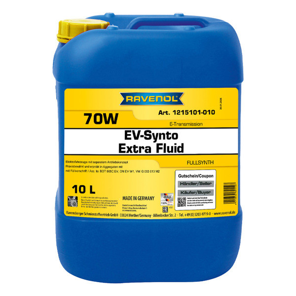 RAVENOL EV-Synto Extra Fluid 70W E-TF-ը իդեալական է տարվա բոլոր եղանակներին օգտագործելու համար բոլոր ժամանակակից էլեկտրական տրանսպորտային միջոցներում: Հատուկ հավելումների փաթեթը բավարարում է բազմաթիվ OEM արտադրողների պահանջները։